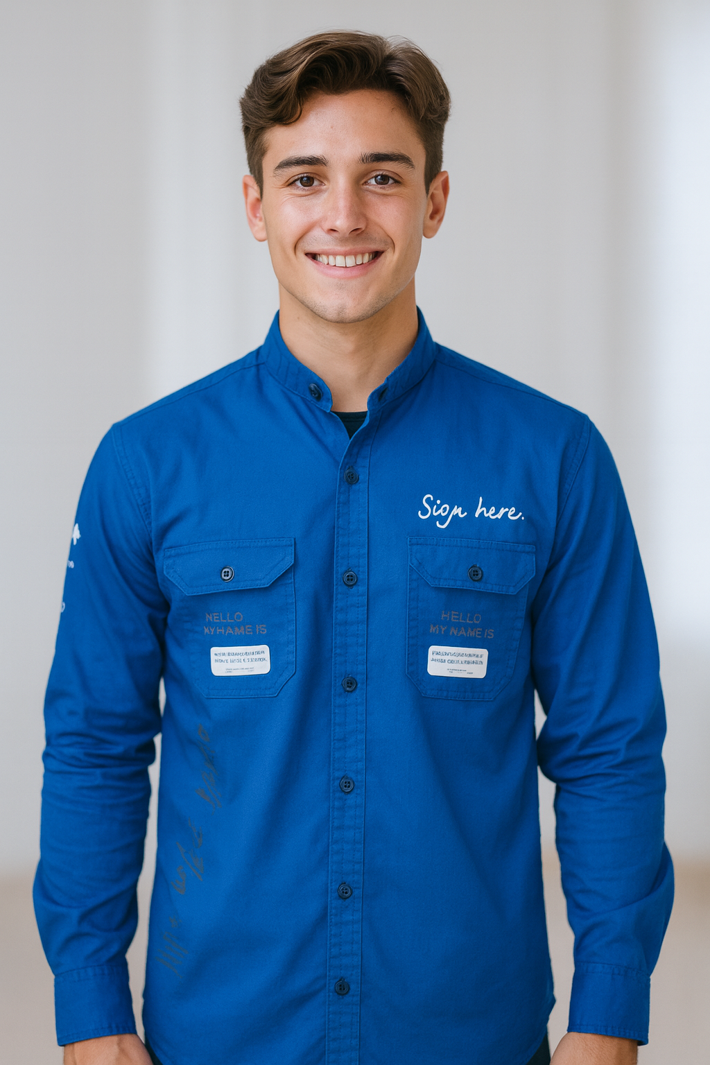 Blue Graphic Printed Long Sleeve Shirt for Men