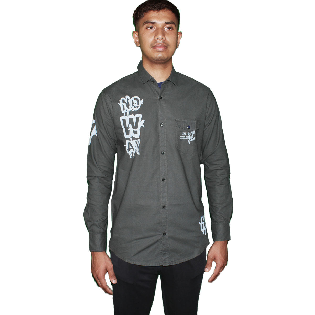 This trendy olive green button-up shirt features bold, graffiti-inspired prints. Perfect for casual outings, this shirt adds an urban flair to your wardrobe. Made from soft, breathable fabric for maximum comfort
